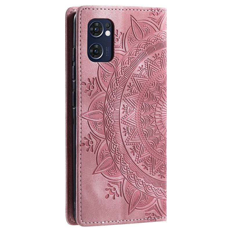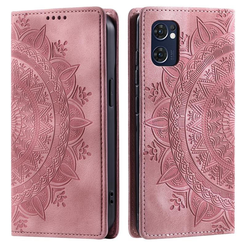 For OPPO Reno7 5G Totem Embossed Magnetic Leather Phone Case(Rose Gold)
