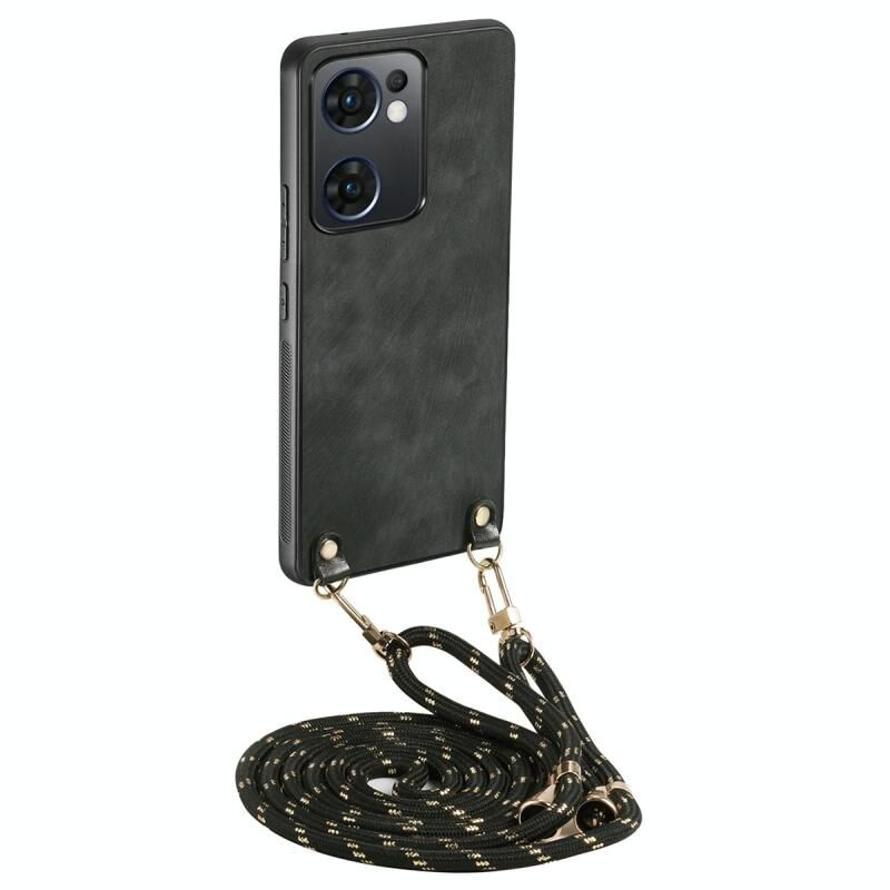 Θήκη κινητού τηλεφώνου OPPO Reno7 5G με δερμάτινη πλάτη PC σε vintage στυλ με λουρί crossbody (Καφέ)