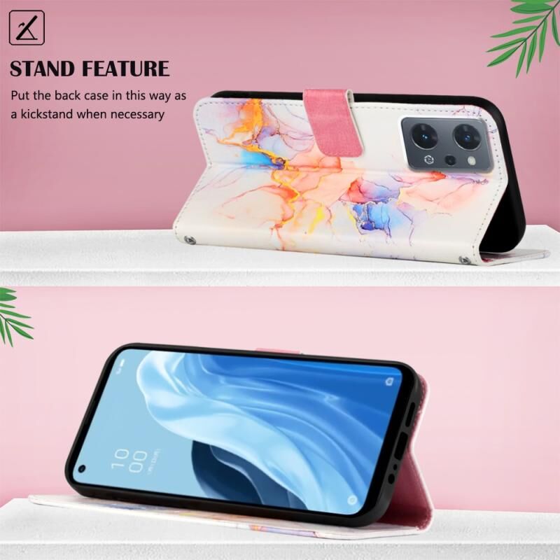 Θήκη τηλεφώνου από δέρμα με σχέδιο μάρμαρου για OPPO Reno7 A Japan PT003 (Ροζ Μωβ Χρυσό LS001)