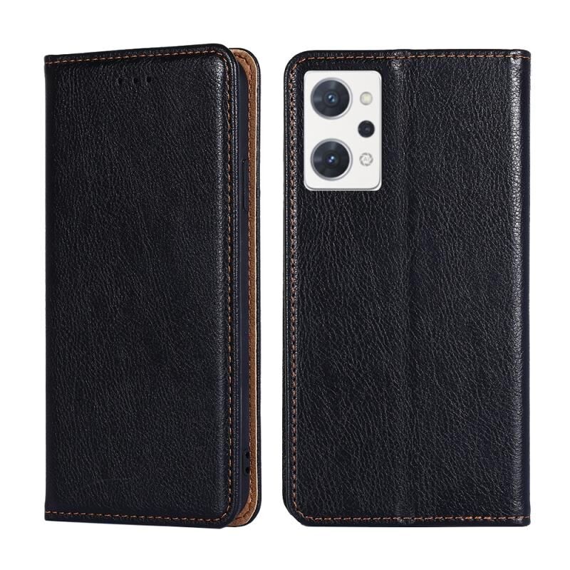 Για OPPO Reno7 A JP έκδοση Gloss πετρελαίου στερεό χρώμα μαγνητικό Flip δέρμα τηλέφωνο υπόθεση (μαύρο)