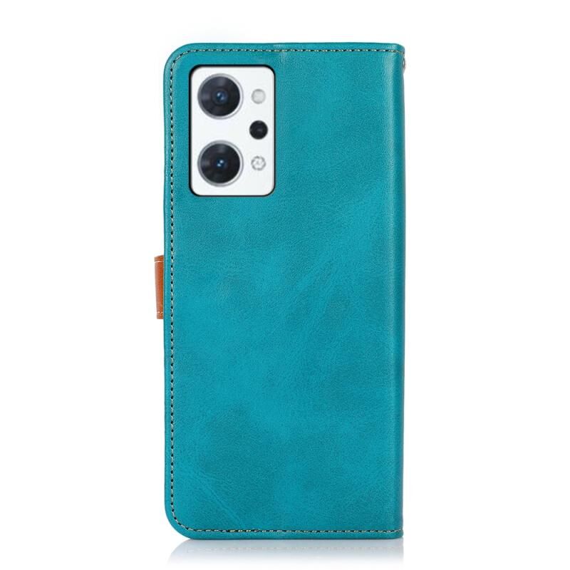 Θήκη τηλεφώνου από δέρμα με υφή δερμάτινου μοσχαριού διπλής απόχρωσης KHAZNEH για OPPO Reno7 A JP Version (Μπλε)