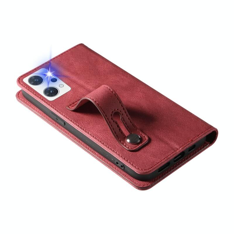Θήκη τηλεφώνου από δέρμα με μαγνητικό βραχιόλι για OPPO Reno7 A (Κόκκινο)