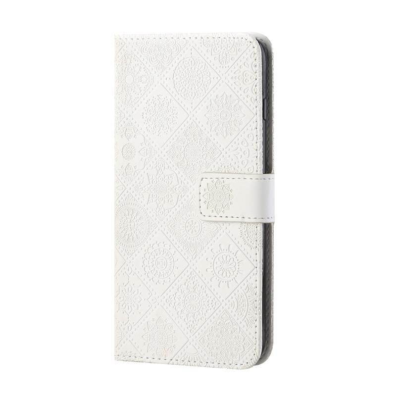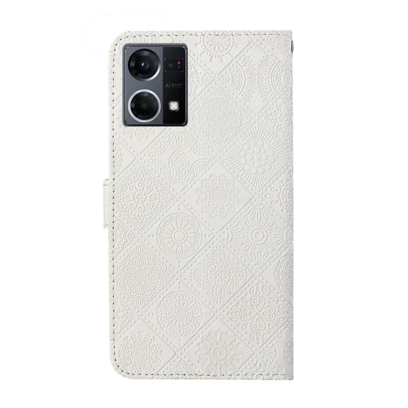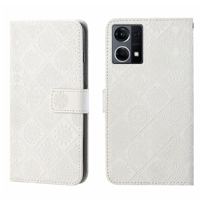 Για OPPO Reno7 Ethnic στυλ ανάγλυφο μοτίβο δερμάτινη θήκη τηλεφώνου (λευκό)