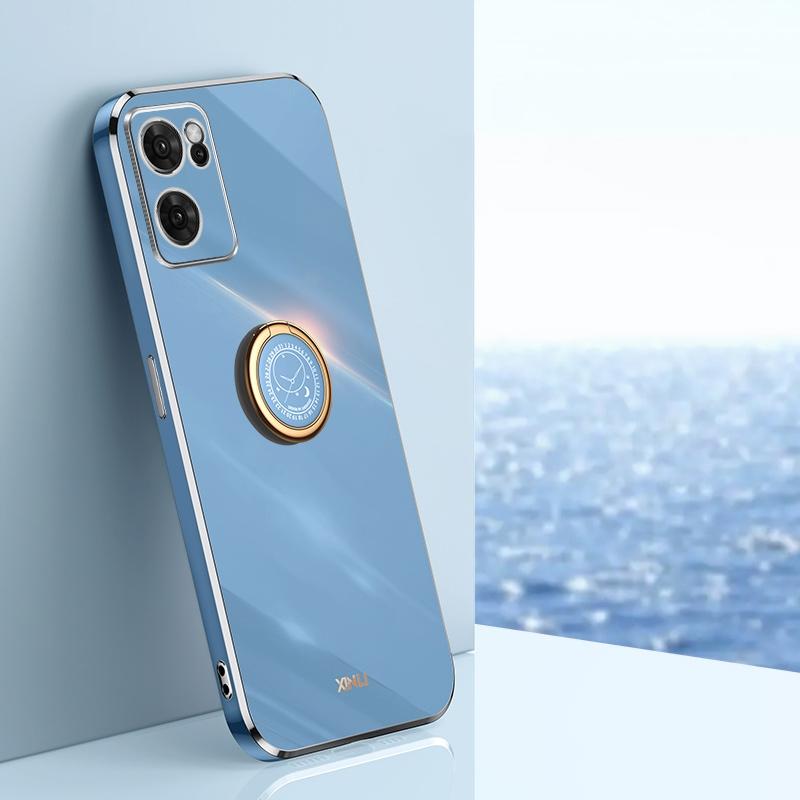 Θήκη τηλεφώνου TPU με Ηλεκτροεπιμετάλλωση 6D και Ευθεία Γωνία για OPPO Reno7 Global XINLI με Δακτύλιο Στήριξης (Μέντας Πράσινο)