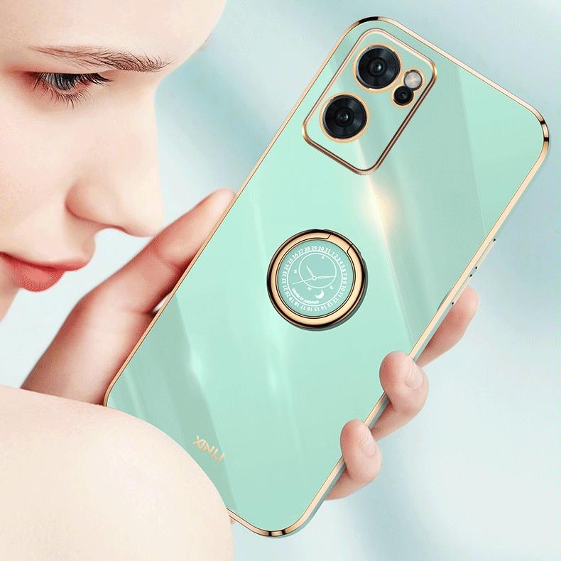 Θήκη τηλεφώνου TPU με Ηλεκτροεπιμετάλλωση 6D και Ευθεία Γωνία για OPPO Reno7 Global XINLI με Δακτύλιο Στήριξης (Μέντας Πράσινο)