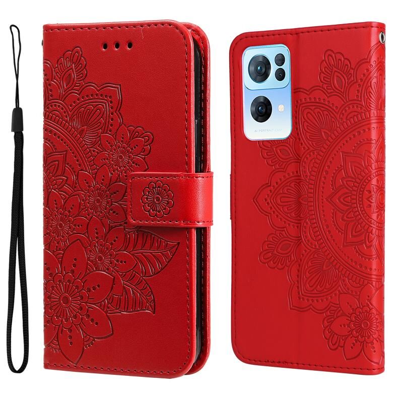 Για OPPO Reno7 Pro 5G 7-πέταλο λουλούδια ανάγλυφο Flip δέρμα τηλέφωνο υπόθεση (κόκκινο)