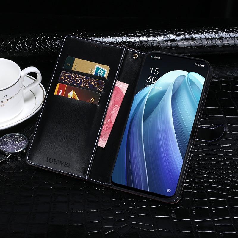For OPPO Reno7 Pro 5G idewei Crocodile Texture Leather Phone Case(Dark Blue) (idewei)