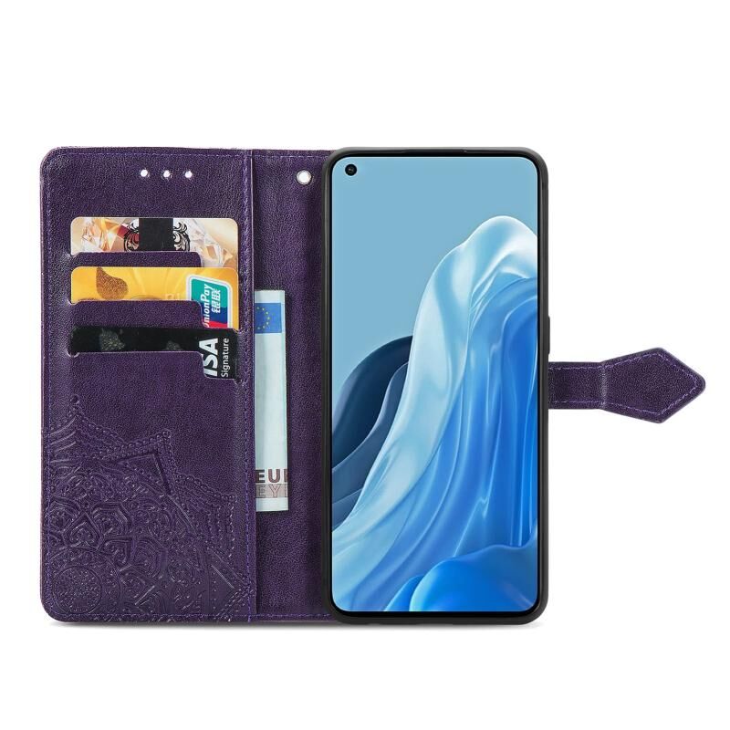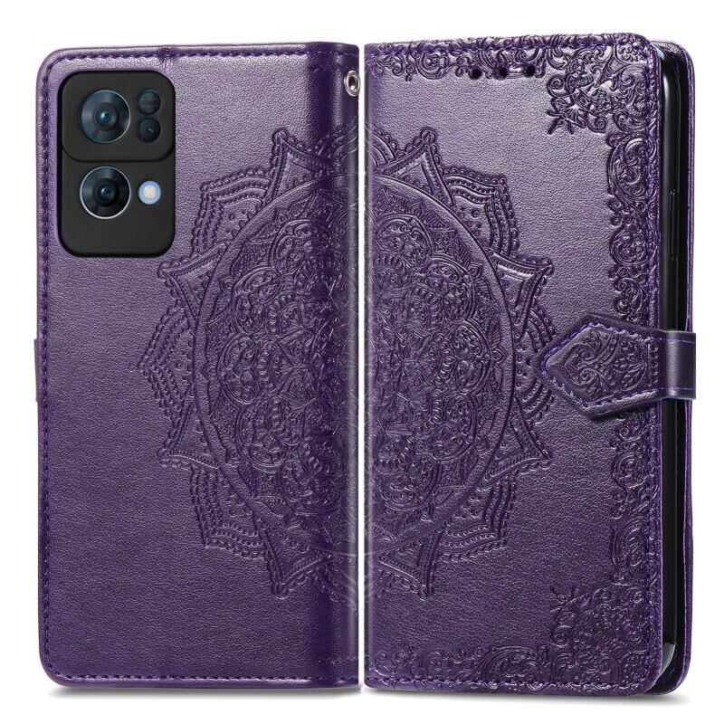 Για OPPO Reno7 Pro 5G Mandala λουλούδι ανάγλυφο ανάγλυφο Flip δέρμα τηλέφωνο υπόθεση (Μωβ)