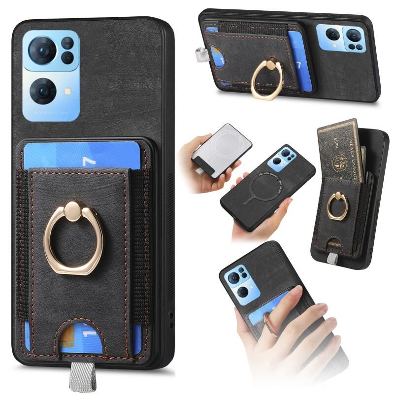 Για OPPO Reno7 Pro 5G Retro Splitable μαγνητική κάρτα τσάντα τσάντα δέρμα τηλέφωνο υπόθεση (μαύρο)