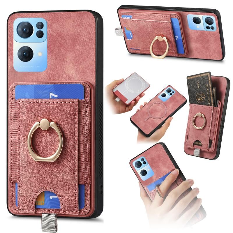 Για OPPO Reno7 Pro 5G Retro Splitable μαγνητική τσάντα κάρτα τσάντα δέρμα τηλέφωνο υπόθεση (ρόζ)
