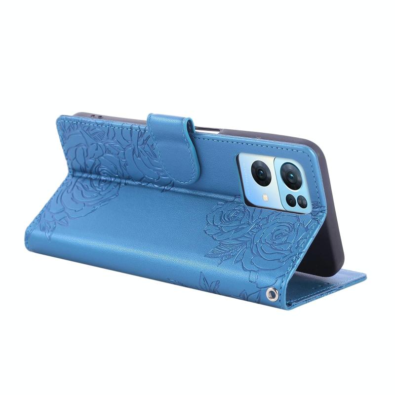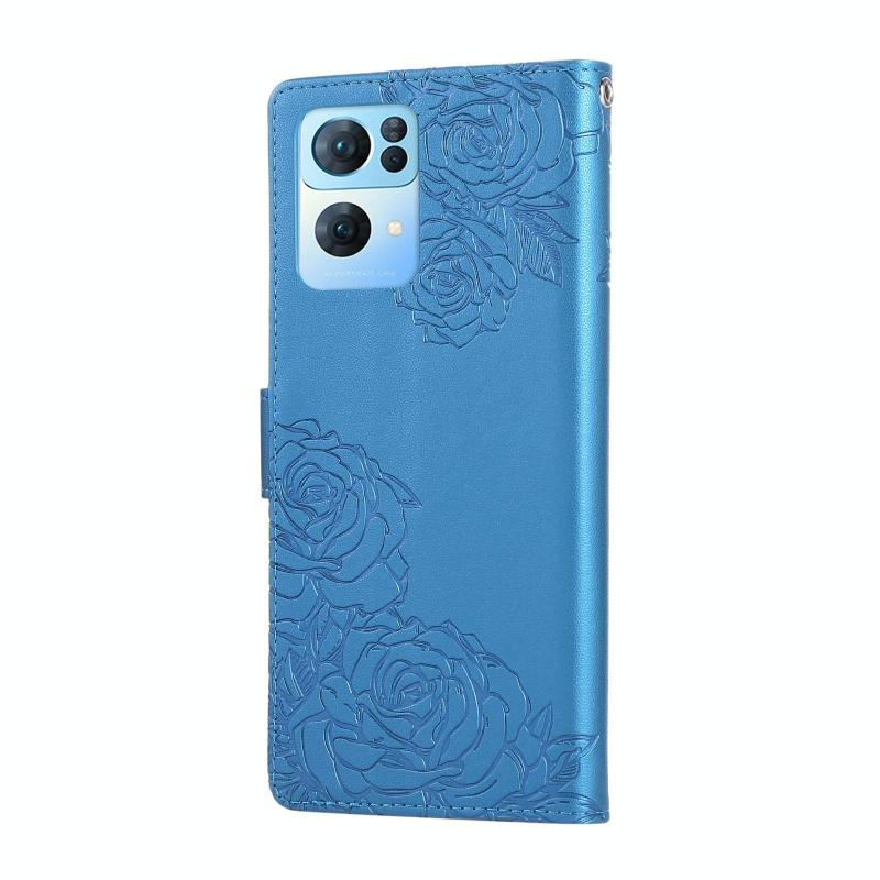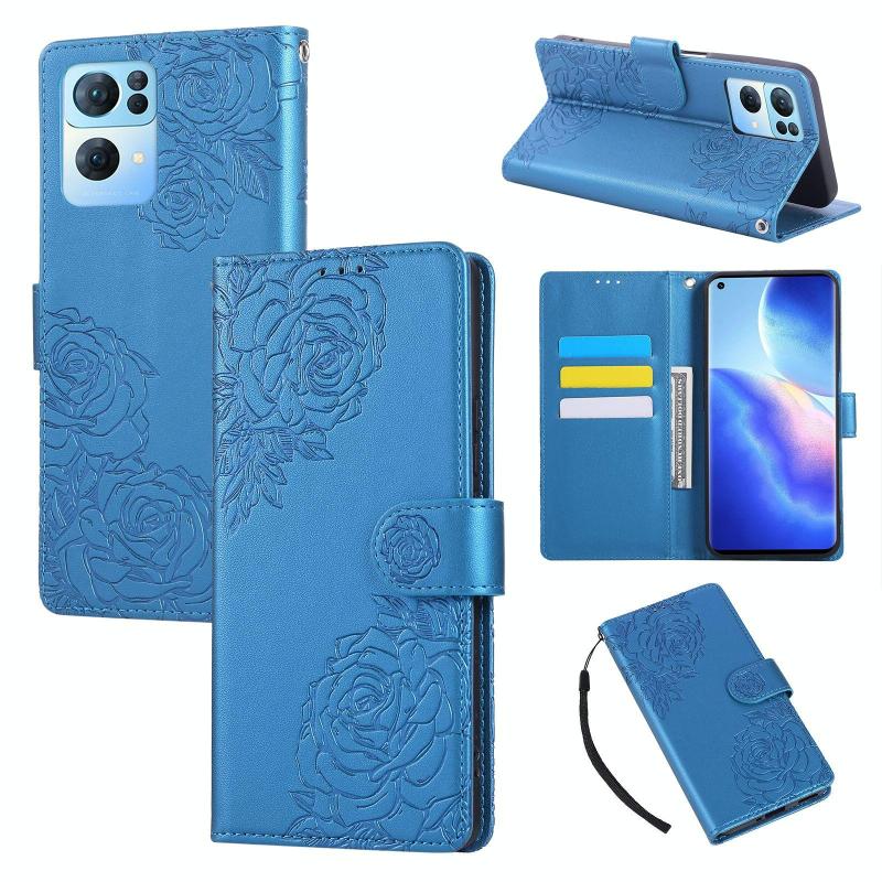 For OPPO Reno7 Pro 5G Rose Flower Embossed 3-Card Slots Leather Phone Case(Blue)