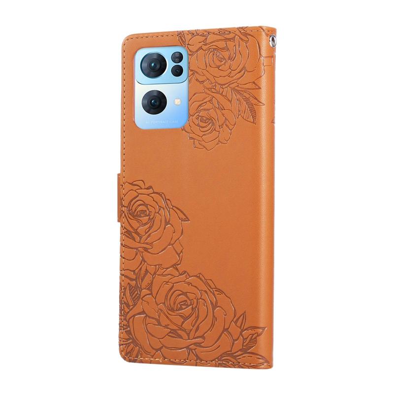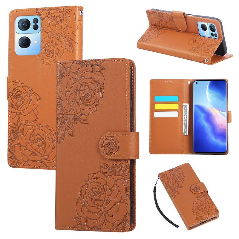 For OPPO Reno7 Pro 5G Rose Flower Embossed 3-Card Slots Leather Phone Case(Brown)