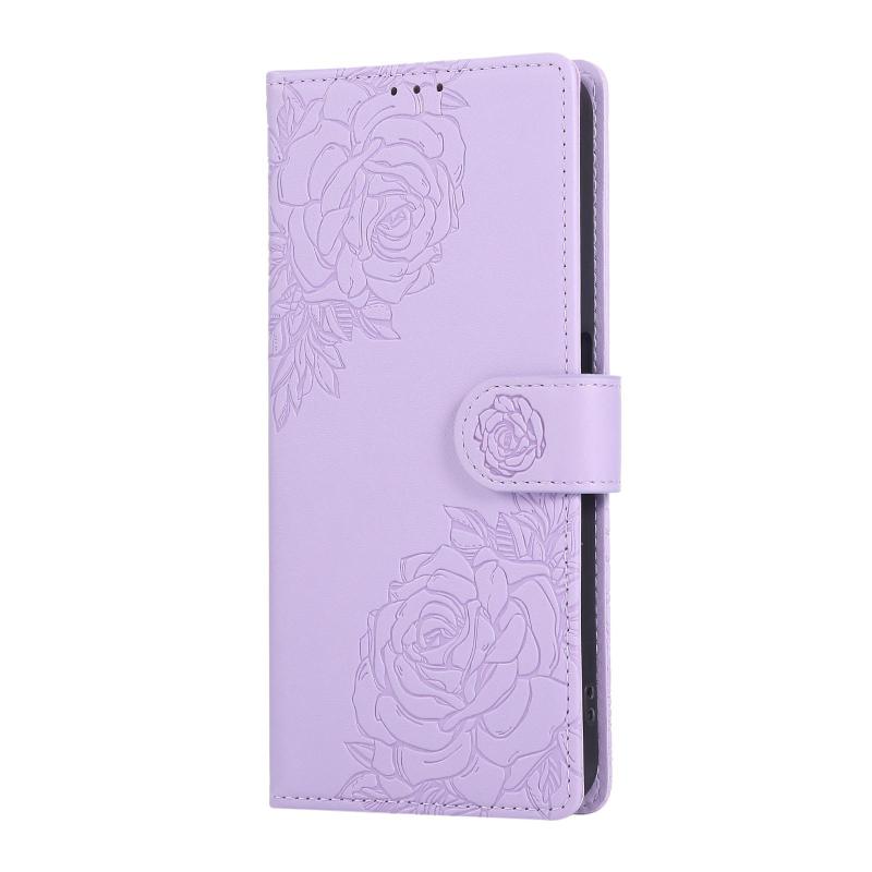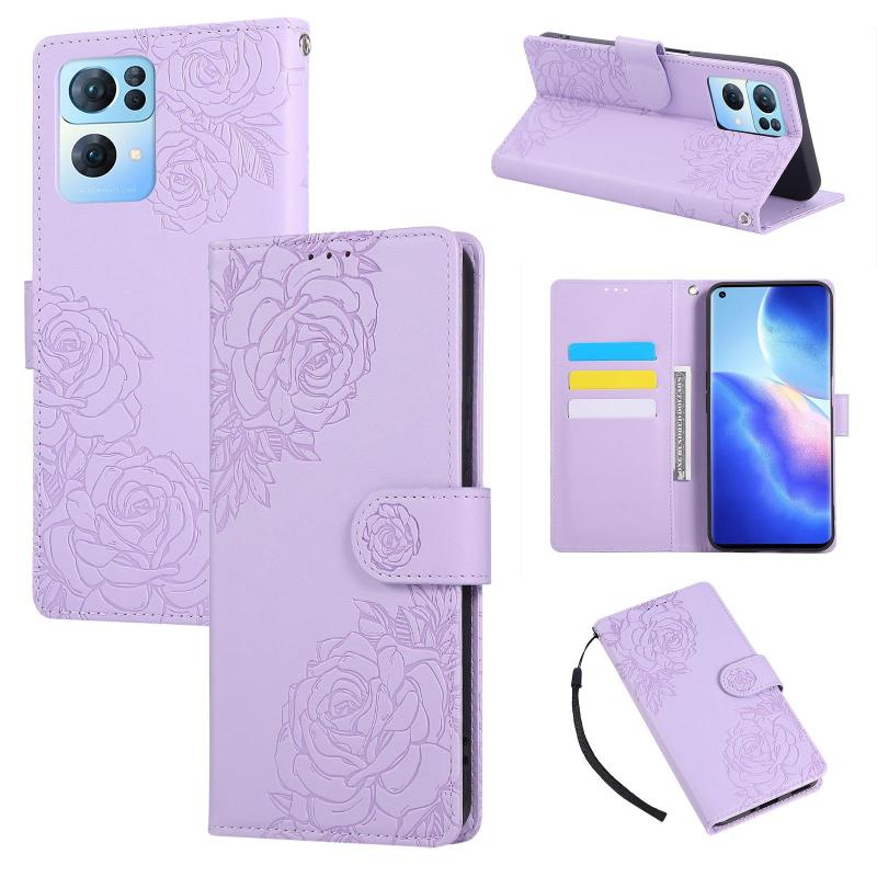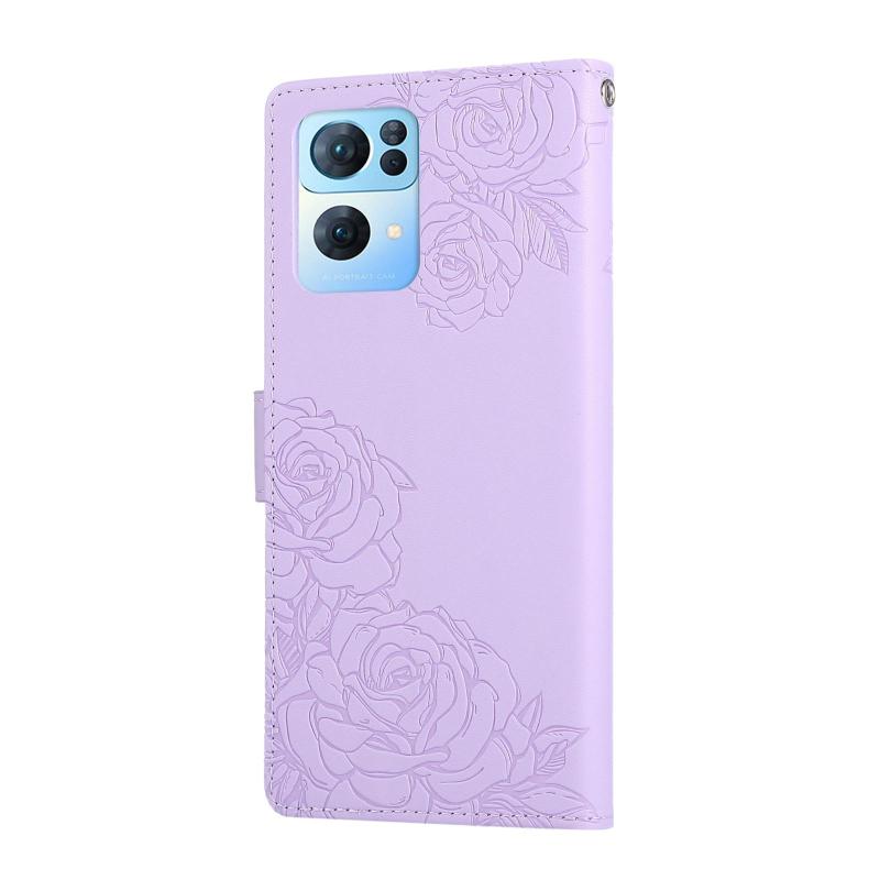 For OPPO Reno7 Pro 5G Rose Flower Embossed 3-Card Slots Leather Phone Case(Purple)