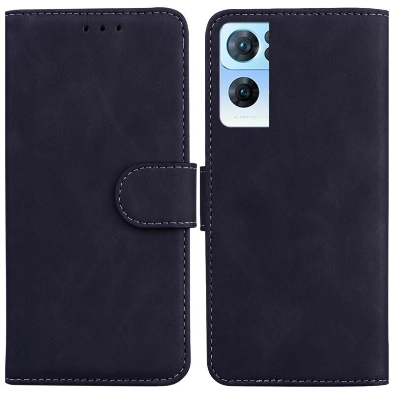 Θήκη τηλεφώνου από δέρμα με αναδιπλούμενο καπάκι και αίσθηση δέρματος, σε καθαρό χρώμα για OPPO Reno7 Pro 5G (Μαύρο)