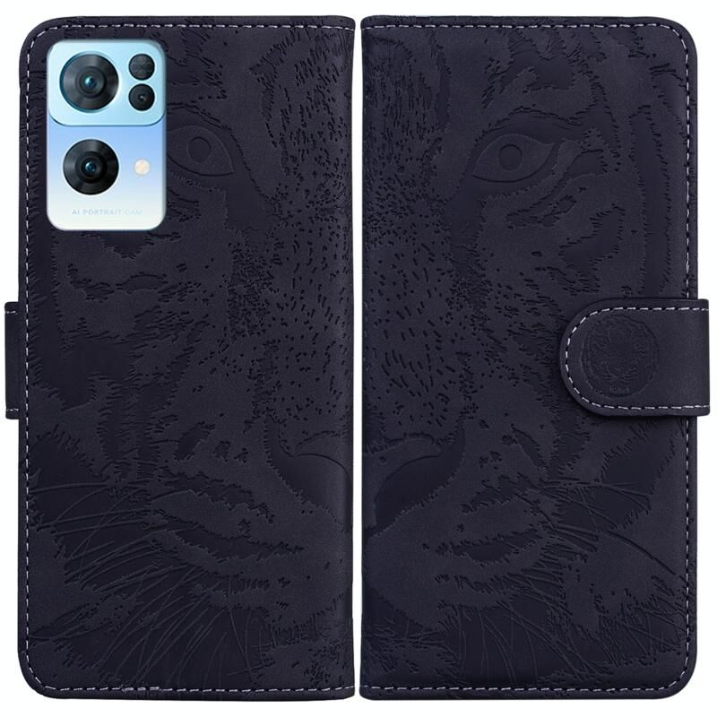 Για OPPO Reno7 Pro 5G Tiger ανάγλυφο μοτίβο οριζόντια Flip δέρμα τηλέφωνο υπόθεση (μαύρο)