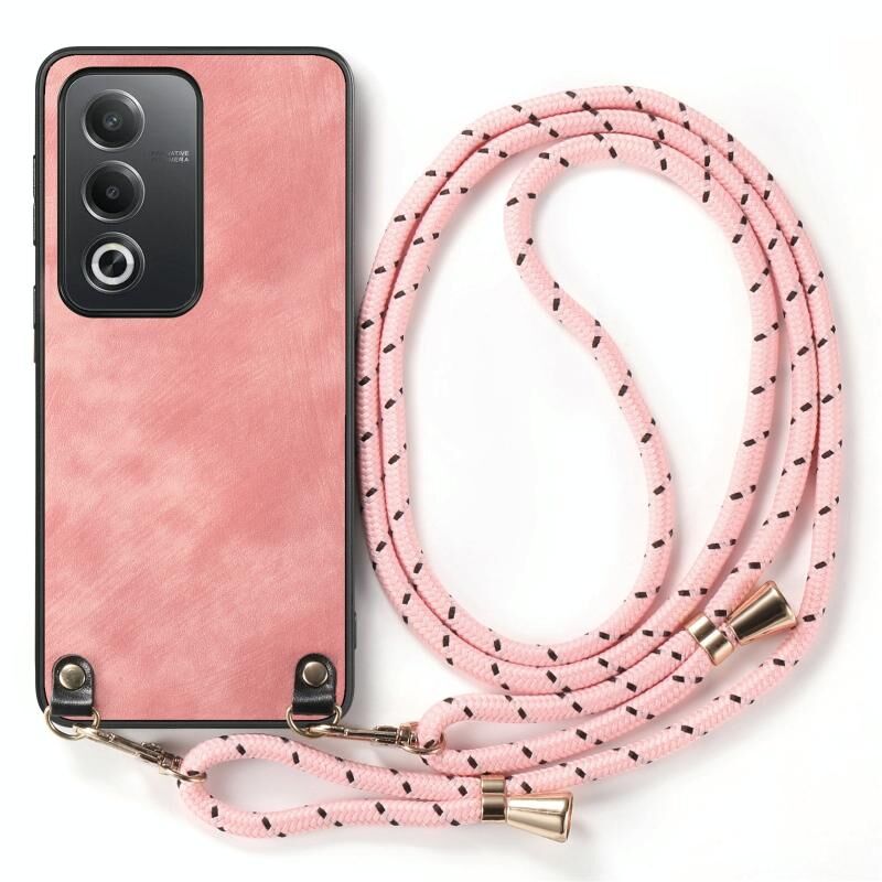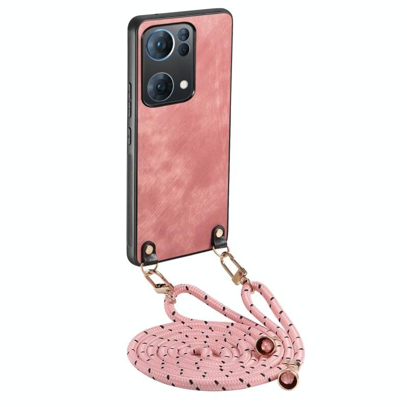 Θήκη κινητού τηλεφώνου OPPO Reno7 Pro 5G με δερμάτινη πλάτη PC σε vintage στυλ και λουρί crossbody (Καφέ)
