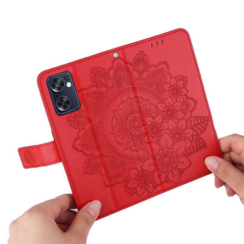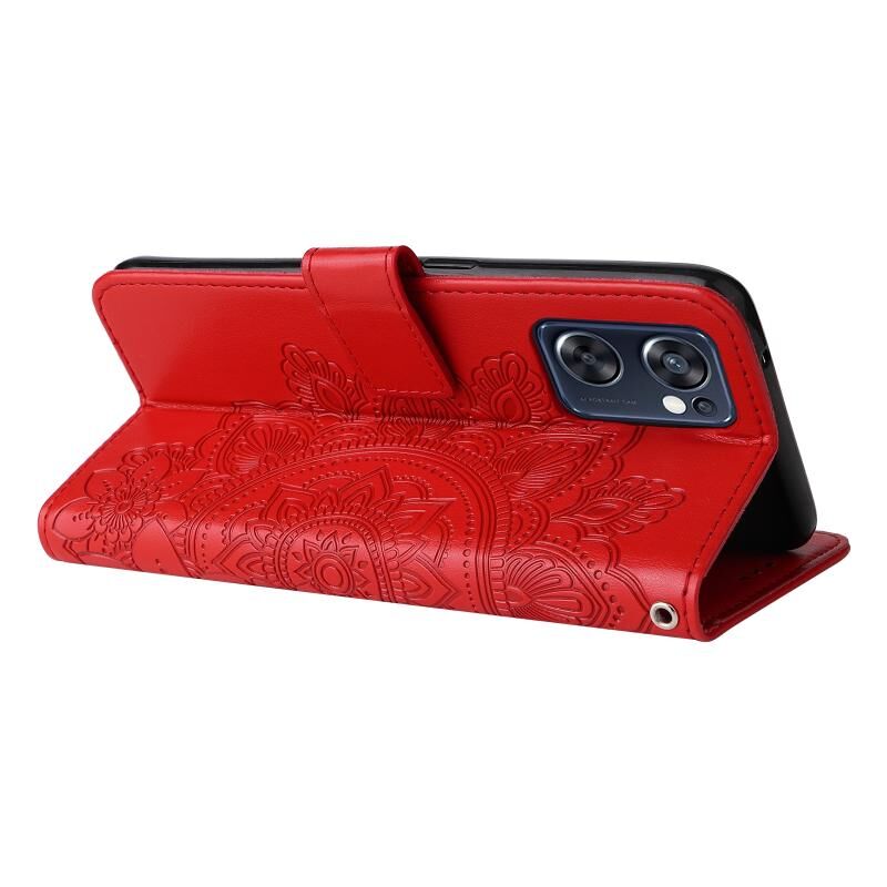 Για OPPO Reno7 SE 5G 7-πέταλα λουλούδια ανάγλυφο μοτίβο οριζόντια Flip δερμάτινη θήκη (Κόκκινο)