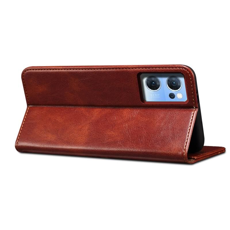 Θήκη τηλεφώνου από δέρμα με απλή υφή Crazy Horse για OPPO Reno7 SE 5G (Μαύρο)