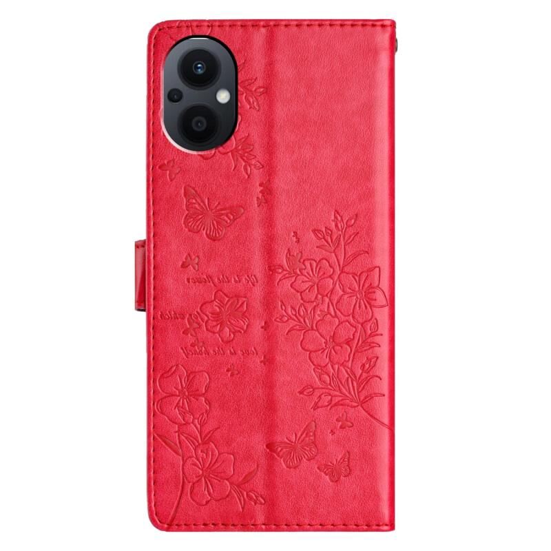 Θήκη τηλεφώνου από δέρμα με πεταλούδες και λουλούδια για OPPO Reno7 Z 5G (Κόκκινο)