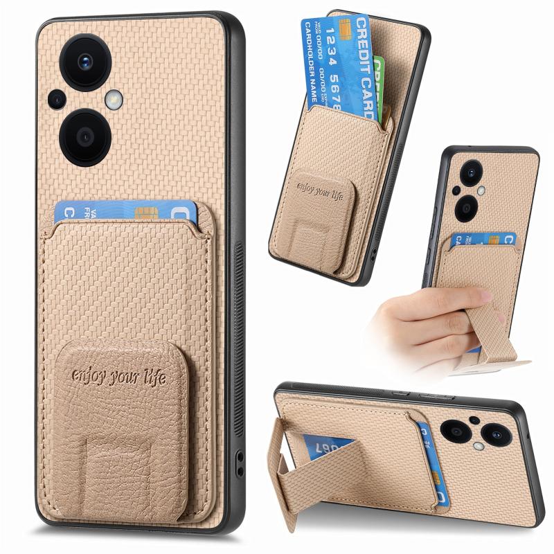 Θήκη για OPPO Reno7 Z 5G/F21 Pro 5G από ανθρακονήματα με κάρτες & βάση στήριξης. (Χακί)