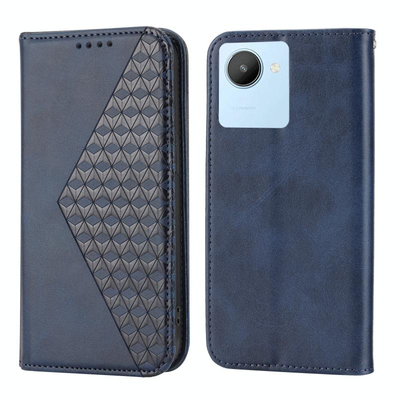 Θήκη τηλεφώνου από μαγνητικό δέρμα με υφή μοσχαριού Cubic Grid για OPPO Reno8 4G Global (Μπλε)