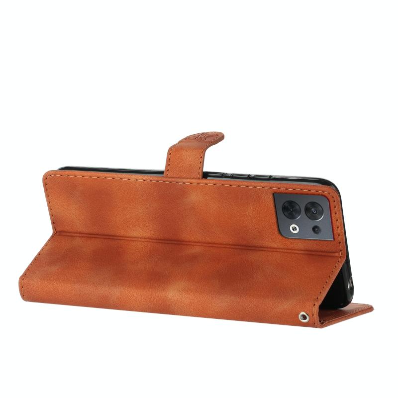 Θήκη τηλεφώνου δερμάτινη με ανάγλυφο σχέδιο λουλουδιών και πεταλούδας για OPPO Reno8 5G (Καφέ)