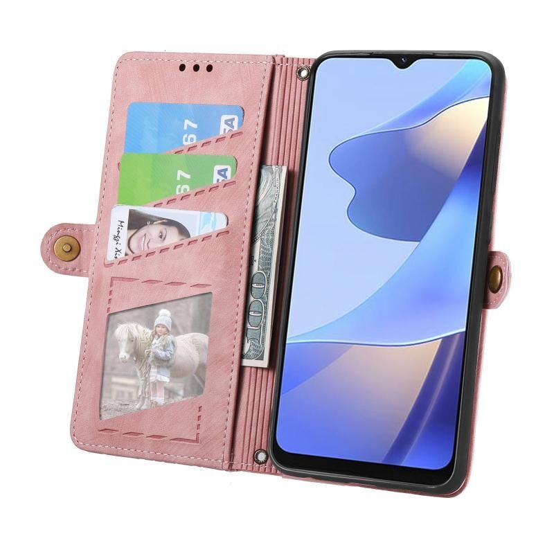 Για OPPO Reno8 5G γεωμετρική φερμουάρ πορτοφόλι πλευρά πόρπη δερμάτινη θήκη τηλεφώνου (ροζ)