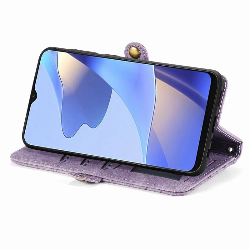 Για OPPO Reno8 5G γεωμετρική φερμουάρ πορτοφόλι πλευρά πόρπη δερμάτινη θήκη τηλεφώνου (μωβ)