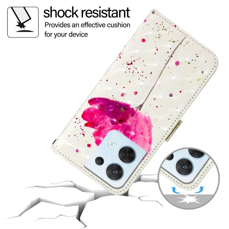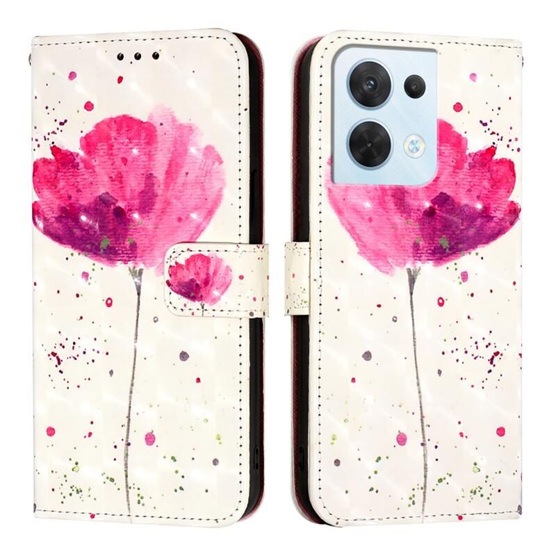 Θήκη τηλεφώνου από δέρμα με οριζόντια αναδίπλωση και τρισδιάστατη βαφή για OPPO Reno8 5G Global (Λουλούδι)