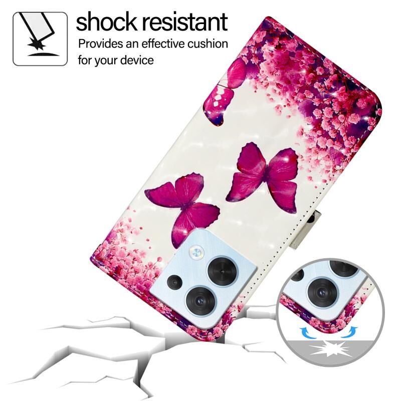 Θήκη τηλεφώνου από δέρμα με οριζόντια αναδίπλωση και τρισδιάστατη βαφή για OPPO Reno8 5G Global (Ροζ Πεταλούδα)