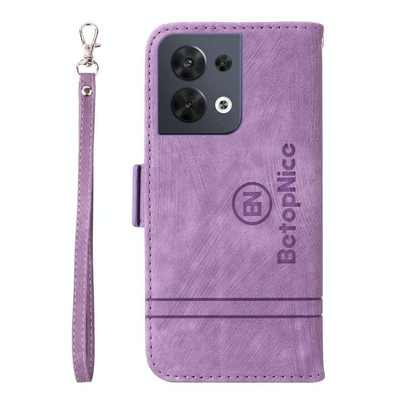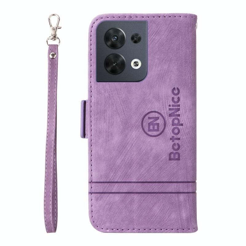 Για το OPPO Reno8 5G Global BETOPNICE Δερμάτινη θήκη τηλεφώνου με διπλή αγκράφα (Μωβ) (BETOPNICE)