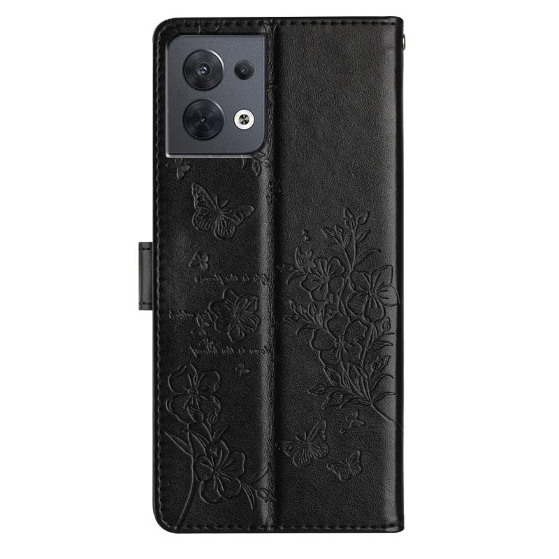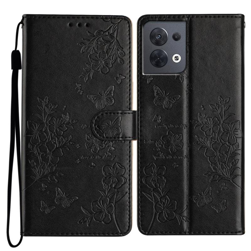 For OPPO Reno8 5G Global Butterflies and Flowers Leather Phone Case(Black)