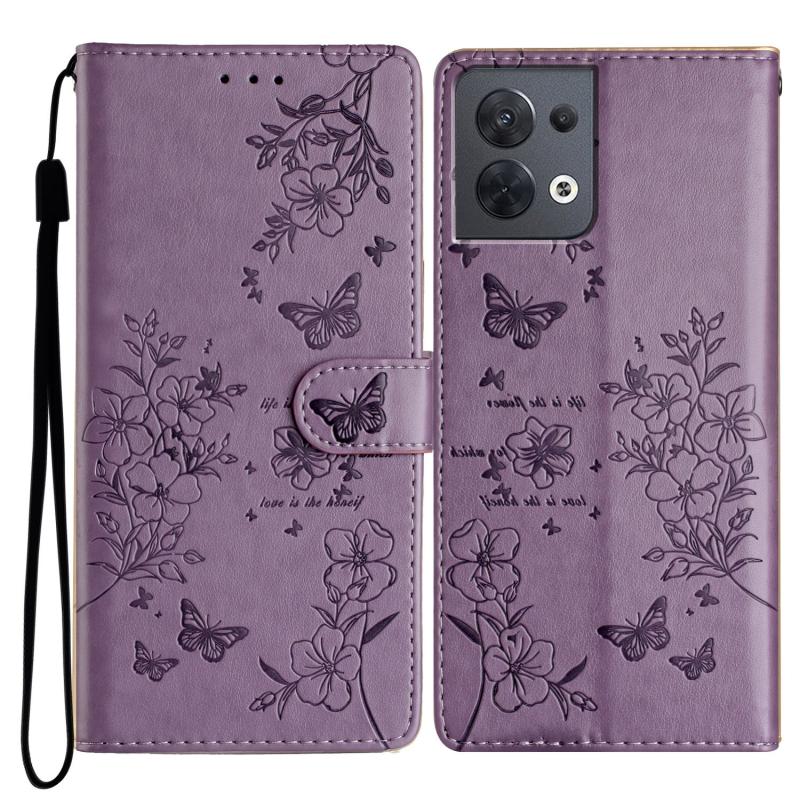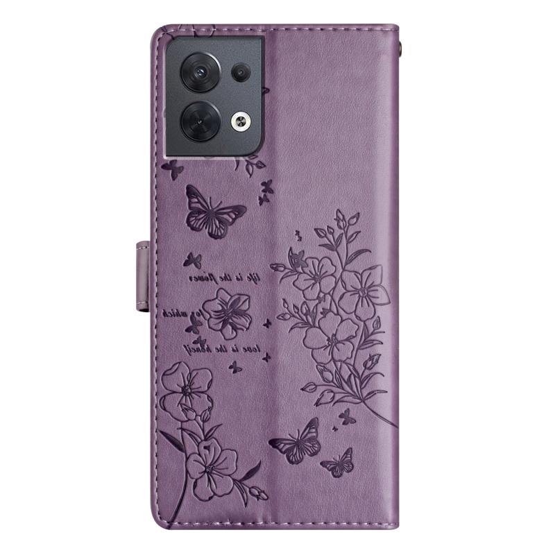 For OPPO Reno8 5G Global Butterflies and Flowers Leather Phone Case(Purple)