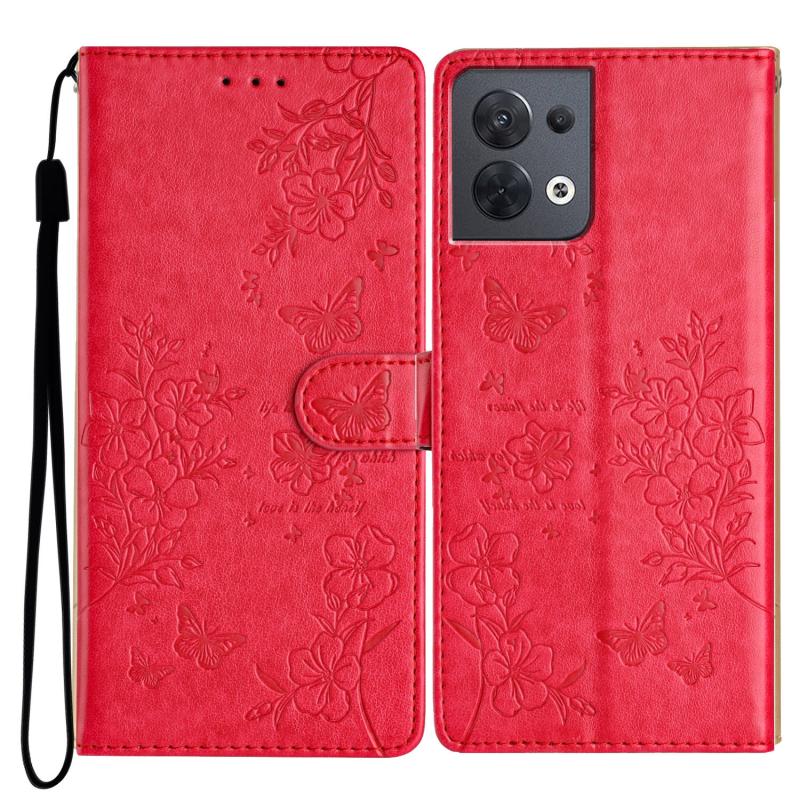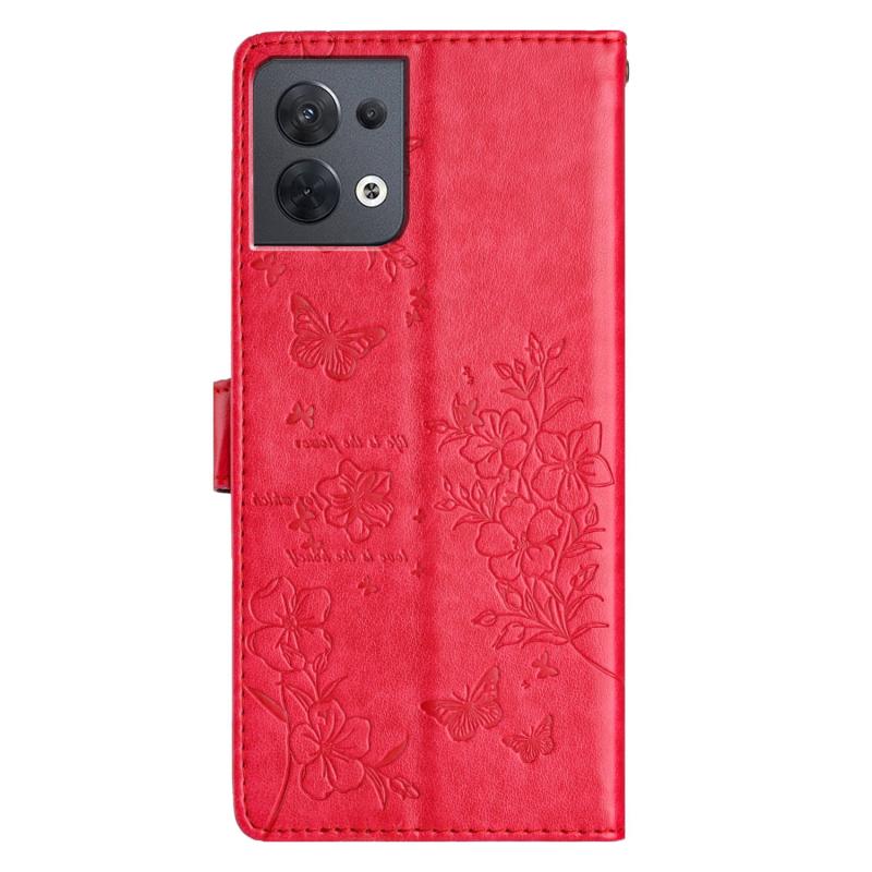 For OPPO Reno8 5G Global Butterflies and Flowers Leather Phone Case(Red)