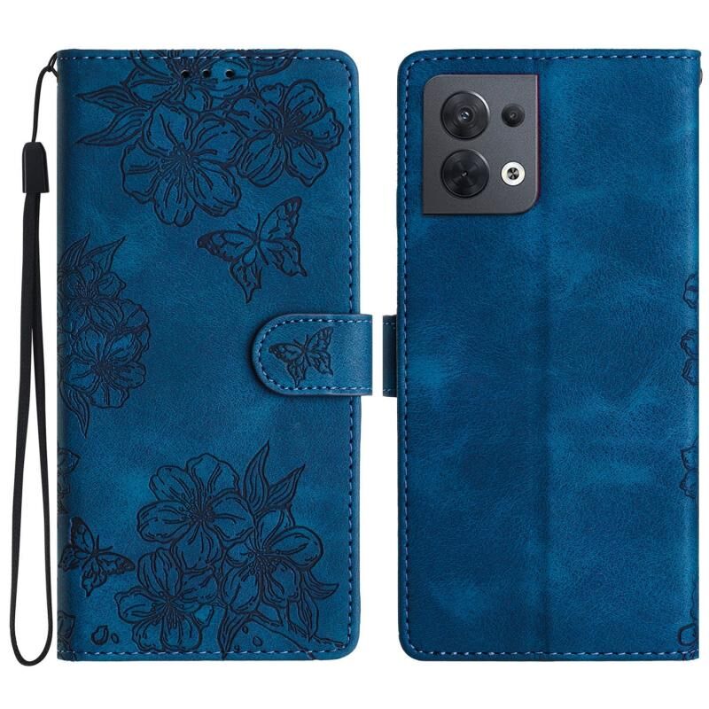 Θήκη τηλεφώνου OPPO Reno8 5G Global Cherry Blossom Butterfly Skin Feel Embossed PU (Κόκκινη)