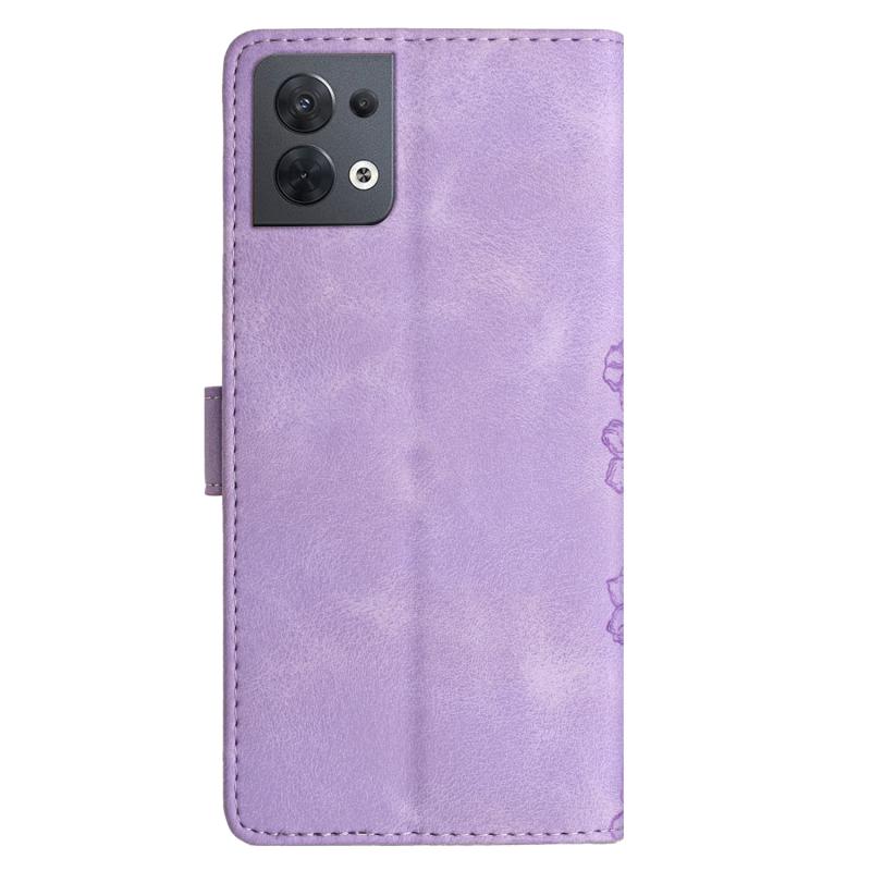 For OPPO Reno8 5G Global Cherry Blossom Butterfly Skin Feel Embossed PU Phone Case(Purple)