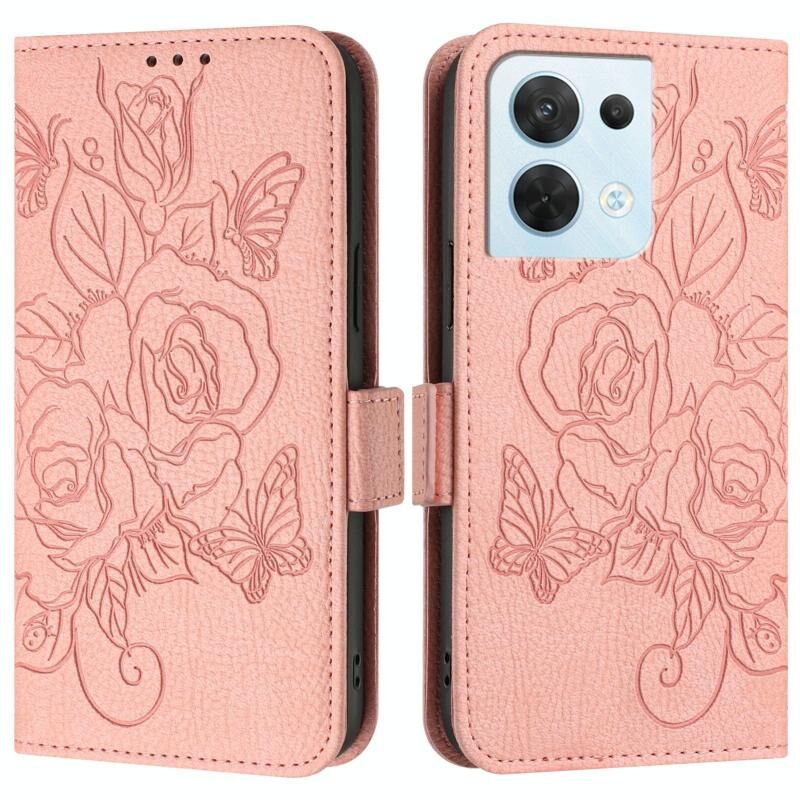 Για OPPO Reno8 5G Παγκόσμια ανάγλυφο Rose RFID Anti-theft Δερμάτινη θήκη τηλεφώνου (ροζ)