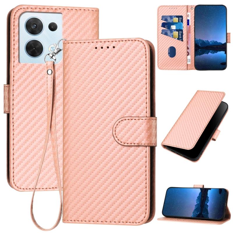 Θήκη τηλεφώνου από δέρμα με ανθρακονήματα και λουρί για OPPO Reno8 5G Global YX0070 (Κόκκινο)