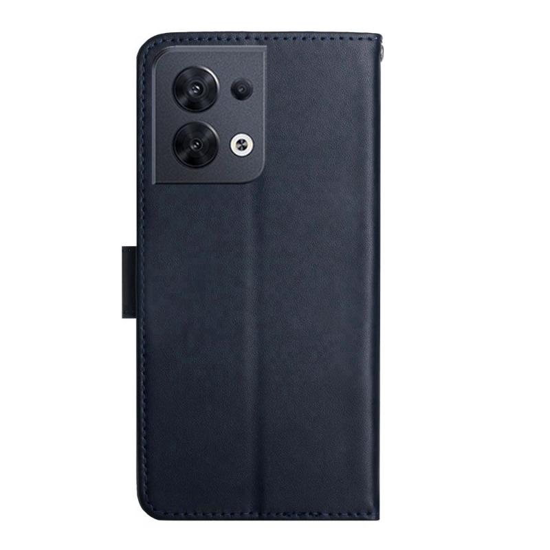 For OPPO Reno8 5G HT02 Genuine Leather Fingerprint-proof Flip Phone Case(Blue)