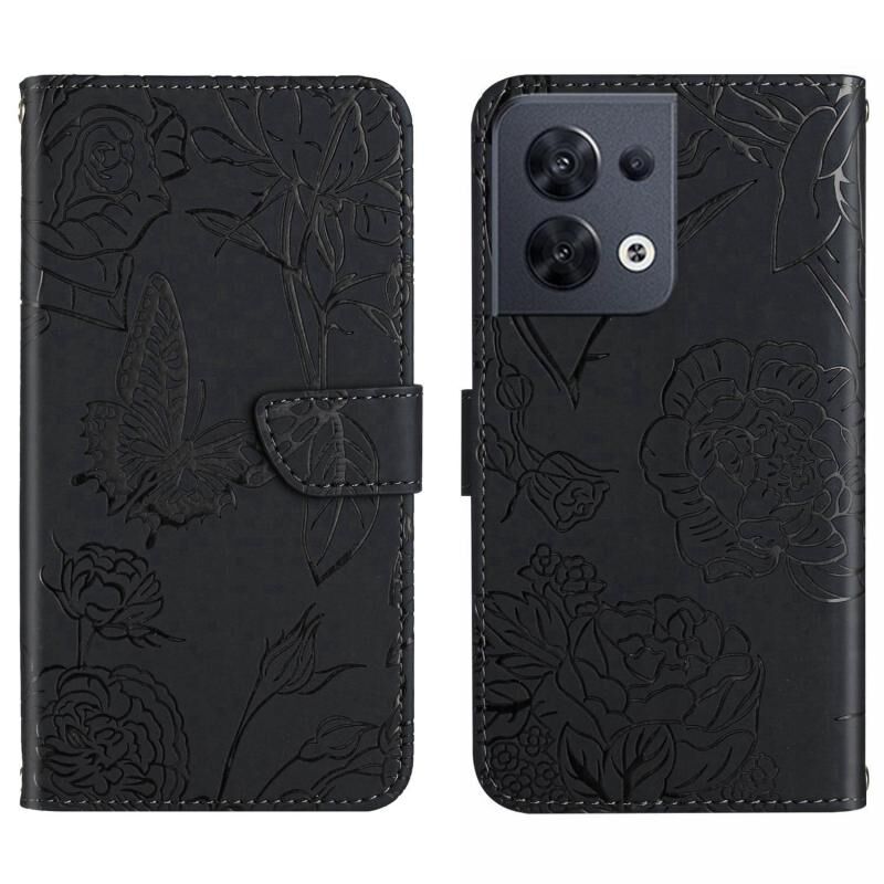Για OPPO Reno8 5G HT03 Skin Feel πεταλούδα ανάγλυφο Flip δέρμα τηλέφωνο υπόθεση (Μαύρο)
