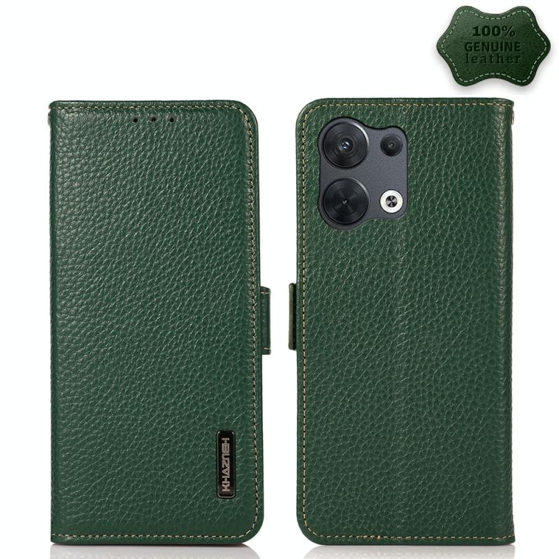 Θήκη τηλεφώνου OPPO Reno8 5G KHAZNEH με μαγνητικό κλείσιμο, από γνήσιο δέρμα Litchi και προστασία RFID (Καφέ)