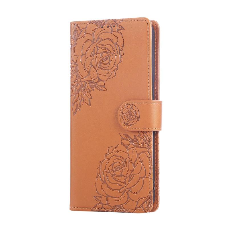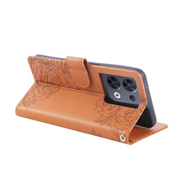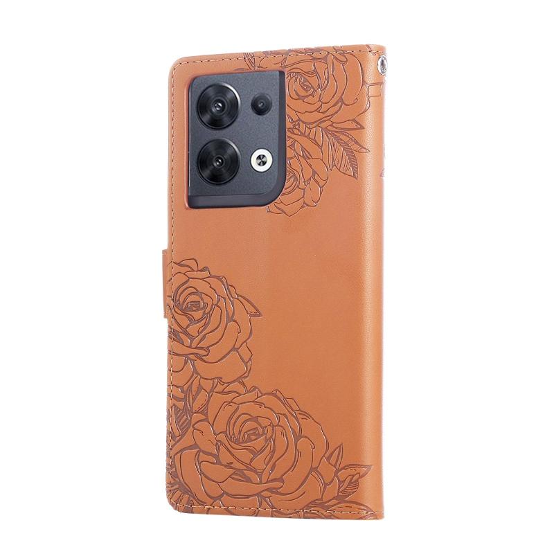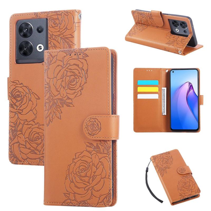 For OPPO Reno8 5G Rose Flower Embossed 3-Card Slots Leather Phone Case(Brown)