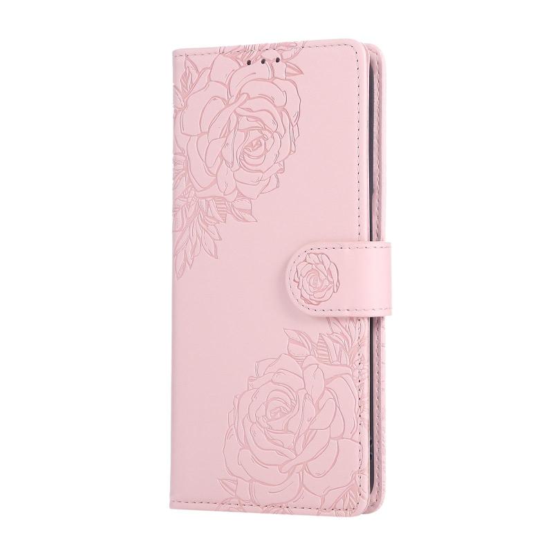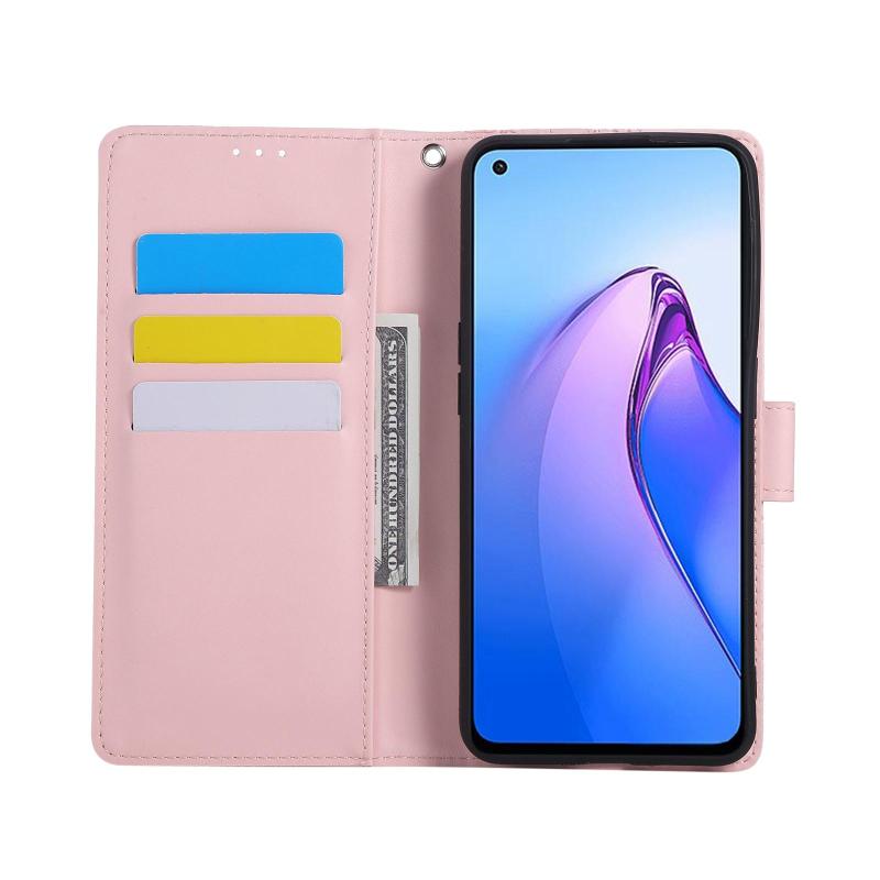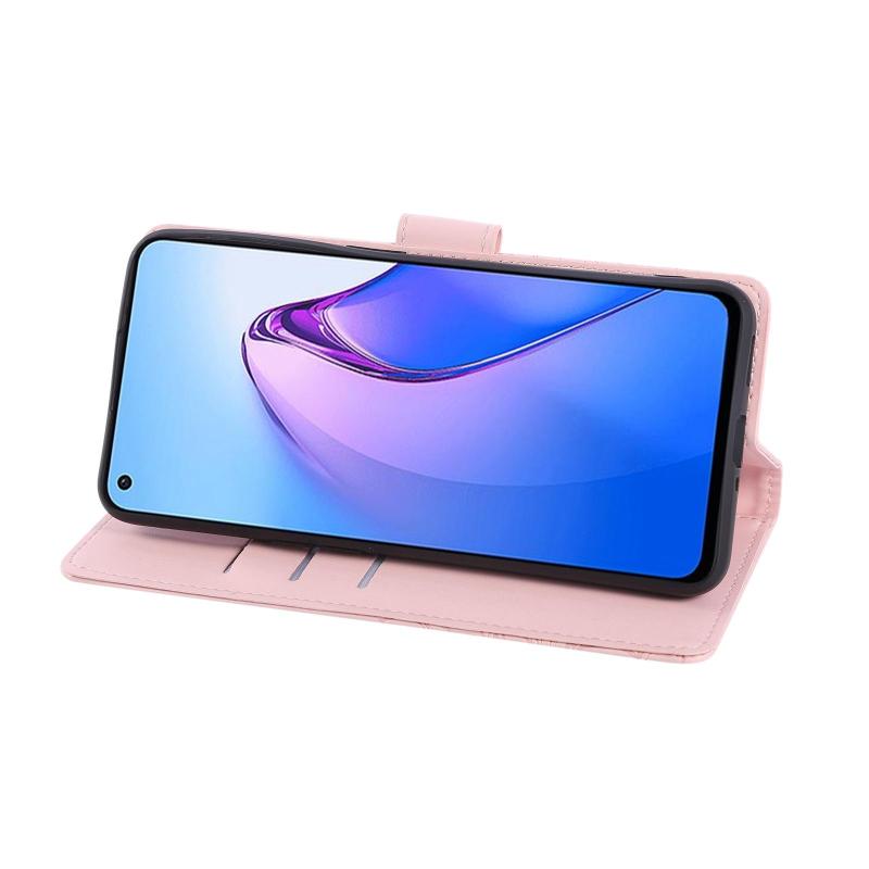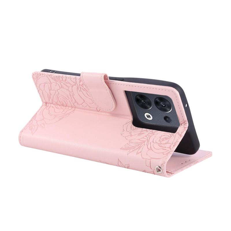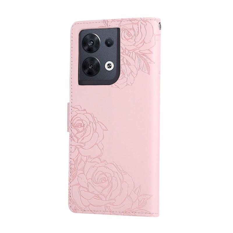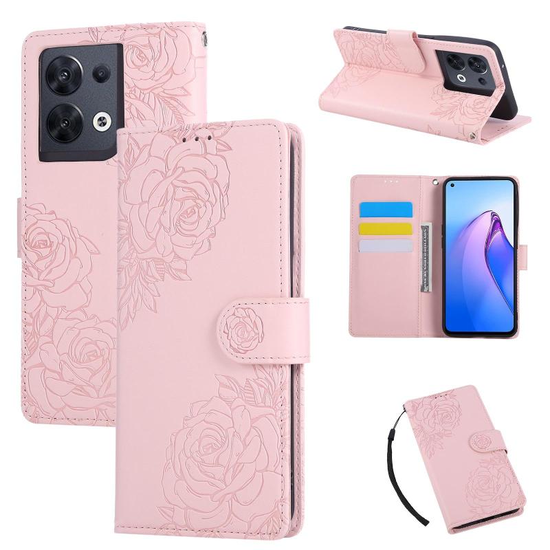 For OPPO Reno8 5G Rose Flower Embossed 3-Card Slots Leather Phone Case(Pink)
