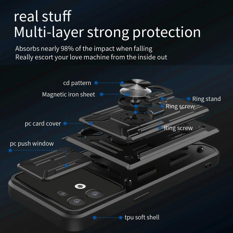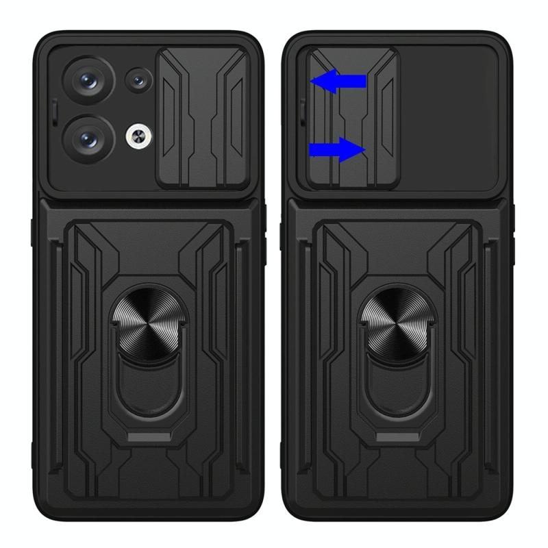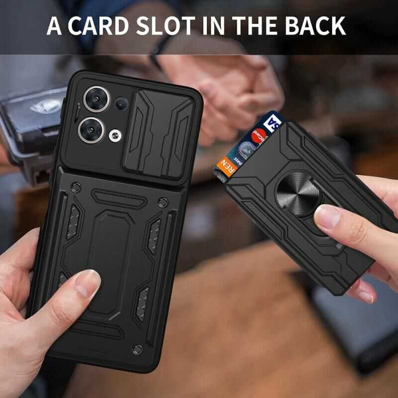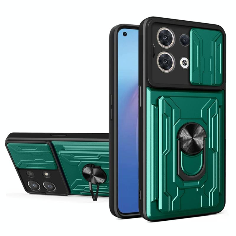 Θήκη τηλεφώνου για OPPO Reno8 5G με συρόμενο προστατευτικό κάμερας Camshield, κατασκευασμένη από TPU+PC με υποδοχή κάρτας (Σκούρο πράσινο)