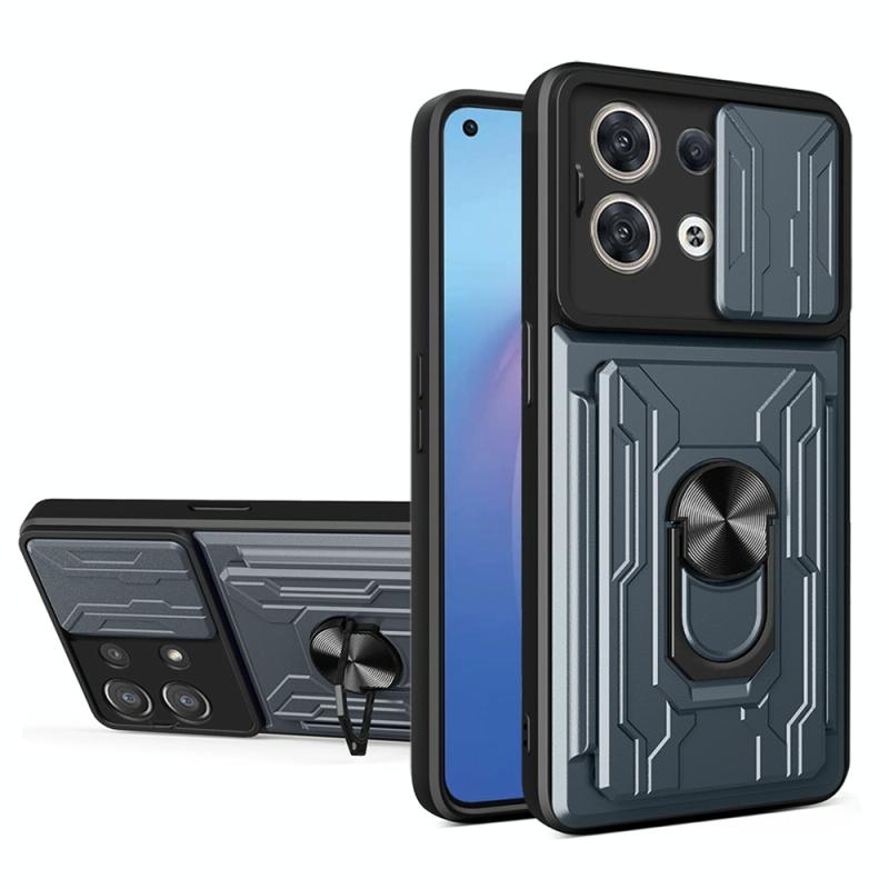 Θήκη τηλεφώνου για OPPO Reno8 5G με συρόμενο προστατευτικό κάμερας Camshield, κατασκευασμένη από TPU+PC με υποδοχή κάρτας (Λευκό)