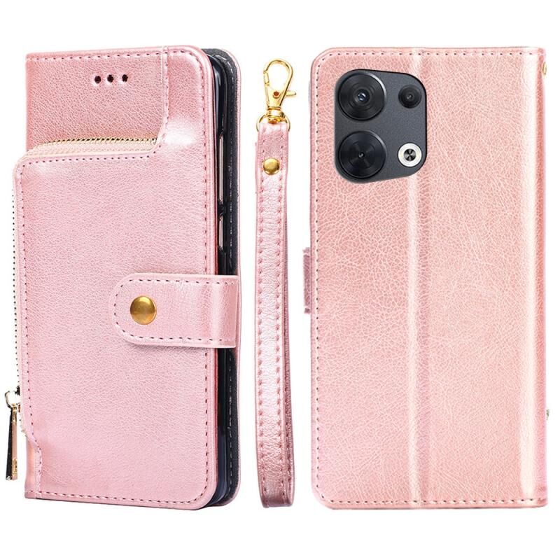 Για OPPO Reno8 5G φερμουάρ τσάντα PU + TPU οριζόντια Flip δέρμα τηλέφωνο υπόθεση (Rose Gold)