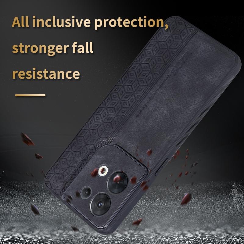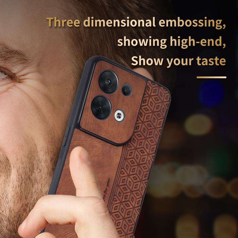 For OPPO Reno8 AZNS 3D Embossed Skin Feel Phone Case(Brown) (AZNS)