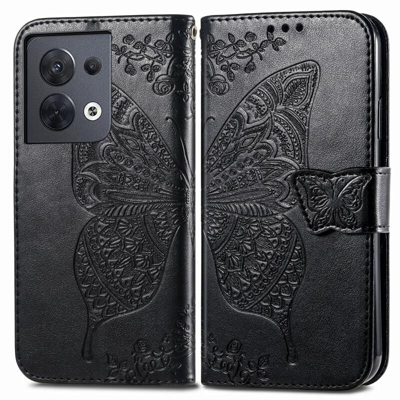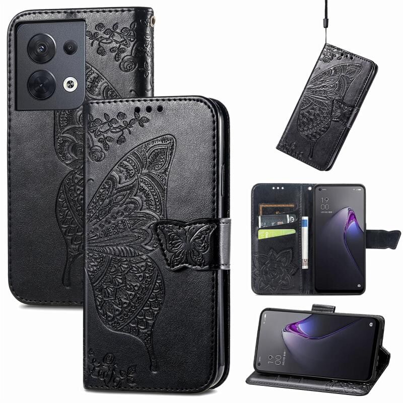 Θήκη τηλεφώνου από δέρμα με ανάγλυφο σχέδιο πεταλούδας και λουλουδιών για OPPO Reno8 (Μαύρο)
