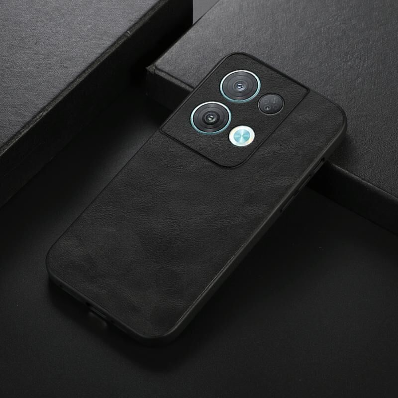 Για OPPO Reno8 Cowhide Υφή PU υπόθεση τηλεφώνου (Μαύρο)