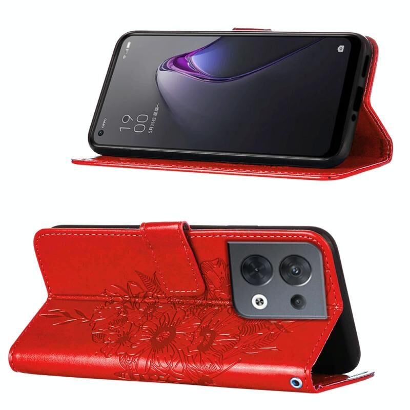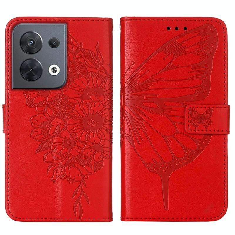 Για OPPO Reno8 ανάγλυφη πεταλούδα Flip δέρμα τηλέφωνο υπόθεση (κόκκινο)